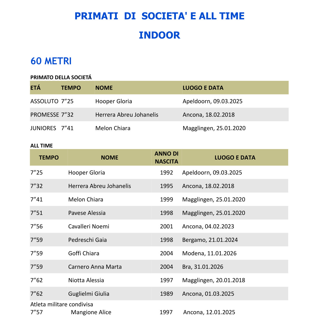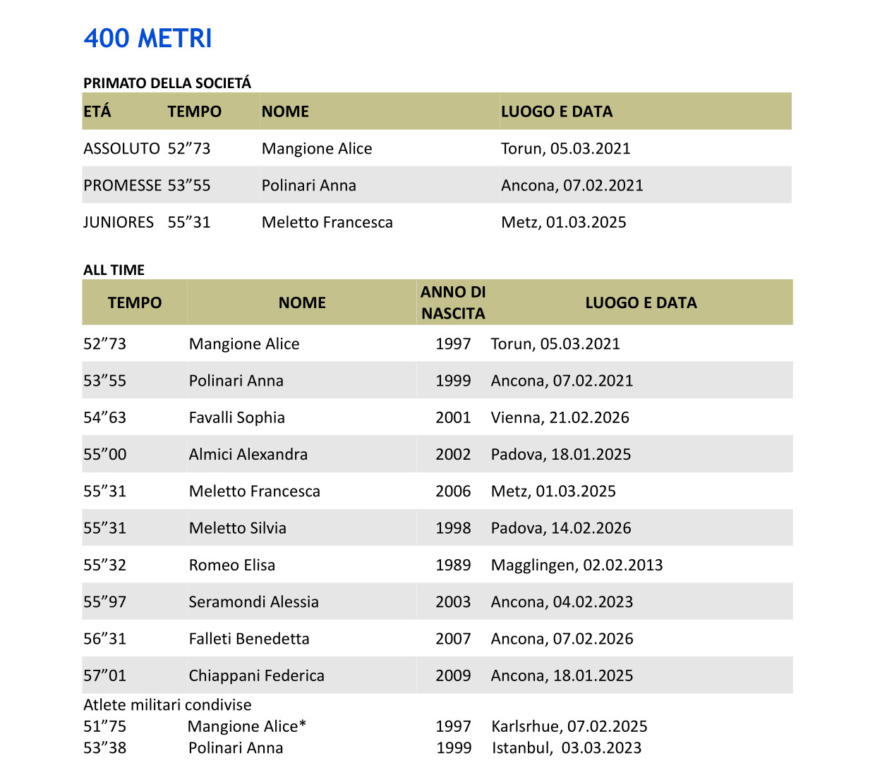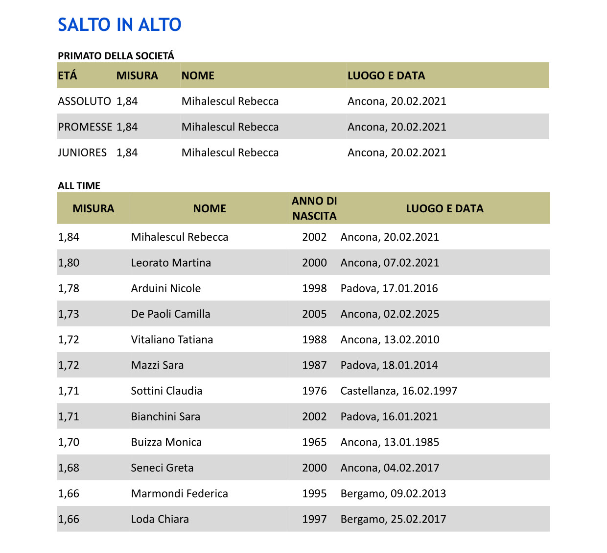 ALL TIME FEMMINILI