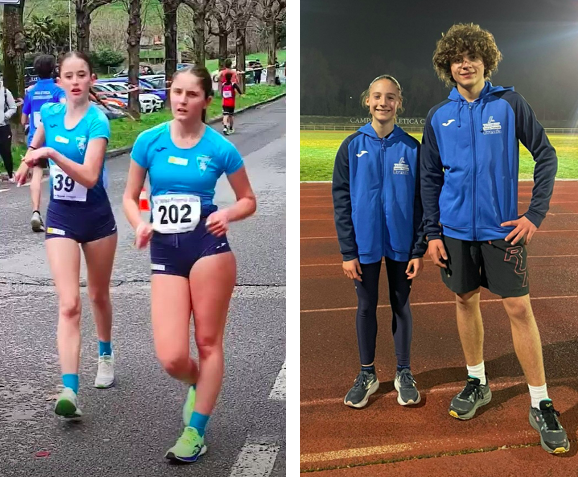 Laura Testa (con il pettorale numero 39) e Marta Balini hanno preso parte alla seconda prova del Trofeo Frigerio di marcia disputato a Canzo (foto Spillo). Nell’immagine a destra Beatrice Padovani e Riccardo Frenna, i due nostri rappresentanti chiamati a far parte della selezione bresciana in gara nel cross di Cortenova (foto Atletica Brescia 1950 giovanili)