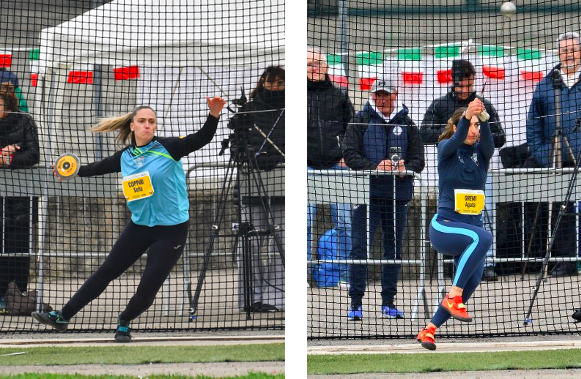 Due protagoniste ai Campionati italiani di lanci lunghi. A sinistra la vincitrice della categoria promesse nel disco Sofia Coppari. A destra Agata Gremi, autrice nuovamente di un lancio oltre i 57 metri nel martello (foto Vaninetti/Fidal Lombardia)