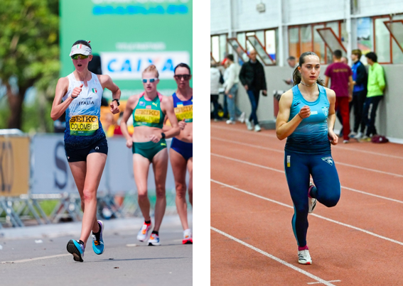 Ai Mondiali per Nazioni disputati in Brasile Nicole Colombi (a sinistra) è stata la miglior azzurra nella mezza maratona di marcia (foto Grana/Fidal). Debutto vincente fra le allieve di Federica Chiappani (a destra) nei 300 metri del SOI Sprint (foto Atleticamente)