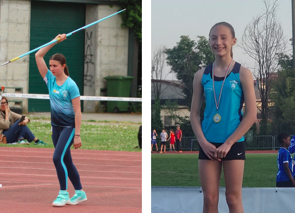 Due successi nel fine settimana per Giuditta Limonta (a sinistra), lanciatrice allieva. A destra: la junior Paola Girelli sul gradino più alto del podio per la vittoria nel giavellotto a Rodengo Saiano.