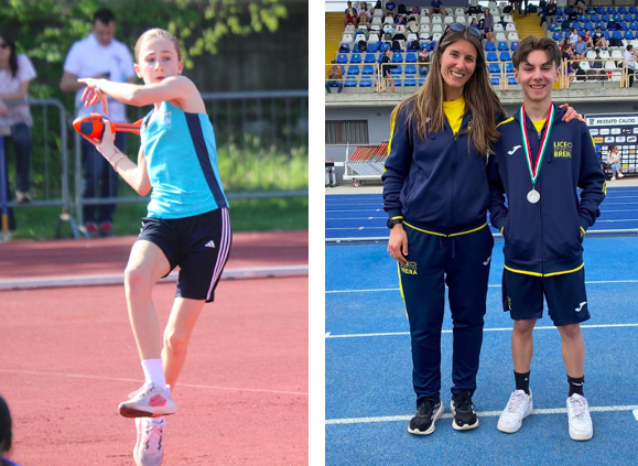 Anita Frusca (a sinistra) ha fatto esordio all’aperto classificandosi prima nel vortex a Chiari. A destra: Edoardo Gazich ha conseguito un bel secondo posto nella gara di lungo della fase provinciale degli Studenteschi.
